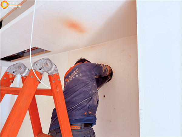 项目情况:该项目位于南通海安信拓滨湖国际别墅区,为项目为联排别墅边户,壁炉安装在客厅中,烟囱穿侧墙到户外,加高过屋檐,由平客壁炉项目部带队上门安装。