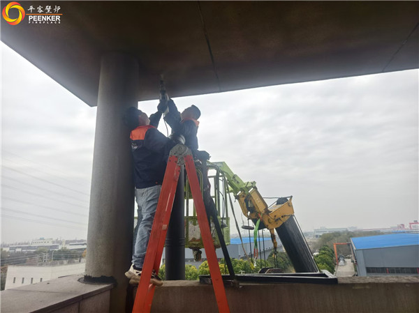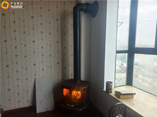 项目情况:该项目位于扬州仪征工厂区,五层独立建筑,安装在4楼,烟囱穿侧墙到户外竖直向上加高过屋檐,平客壁炉项目部带队上门安装。
