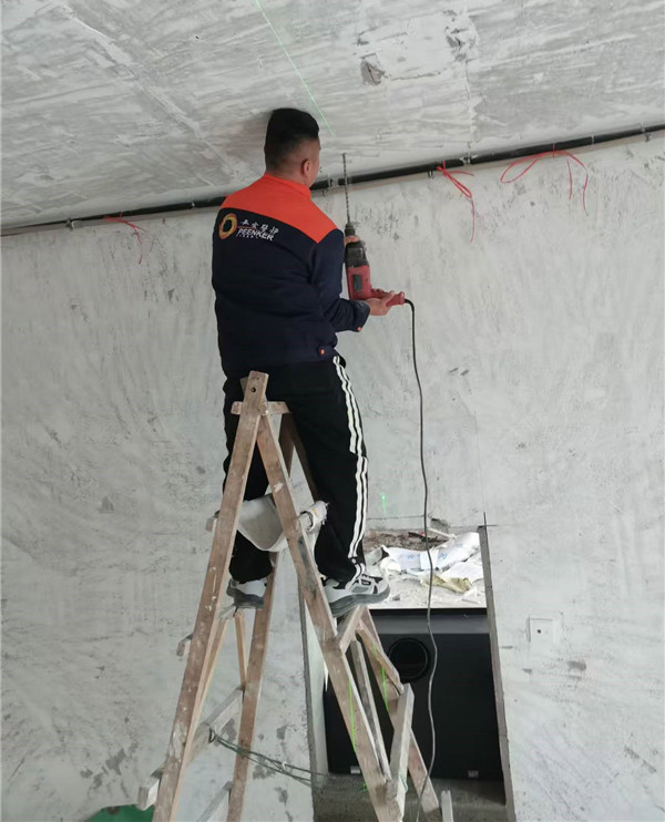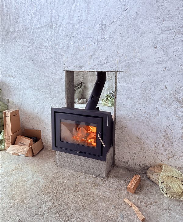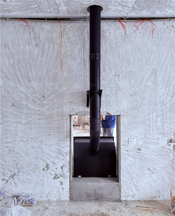 项目情况:该项目为三层独栋别墅,壁炉安装在一楼客厅中,烟囱直穿三层楼板到屋顶,由客户负责后续防水工作,平客壁炉项目部带队上门安装。
