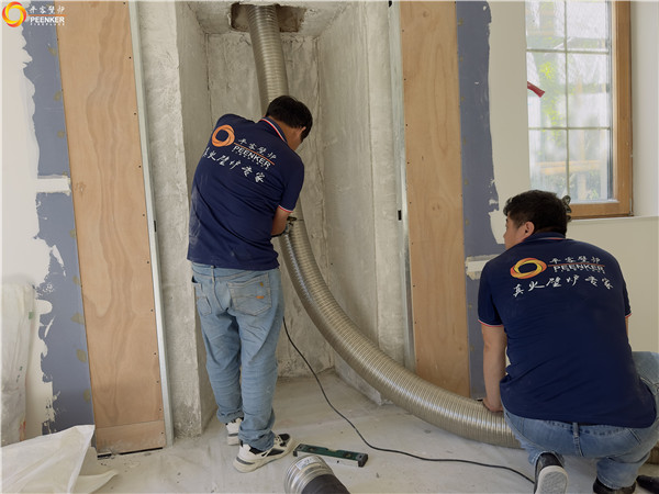 项目情况:该项目为独栋别墅,自带砖石炉膛与烟道,在2024年5月份,根据装修进度,壁炉烟囱先入场安装,2024年11月15日,丹麦Aduro宽屏火炉入场,由【平客壁炉】项目部带队上门安装。
