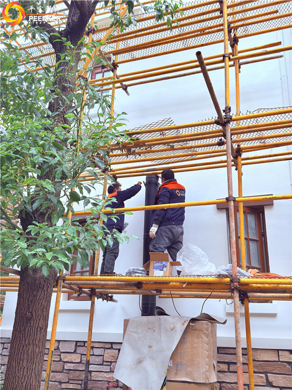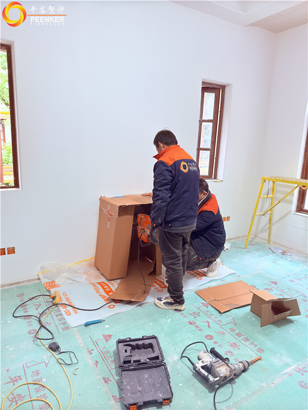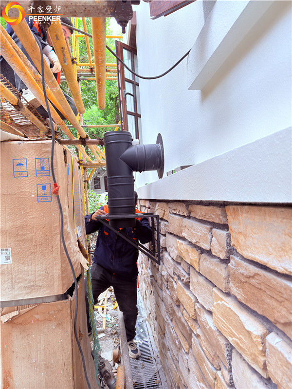 项目情况:该项目位于上海松江区,为项目独栋别墅,壁炉安装在客厅中,选择背排的安装方式,烟囱穿侧墙到户外,加高过屋檐,由平客壁炉项目部带队上门安装。