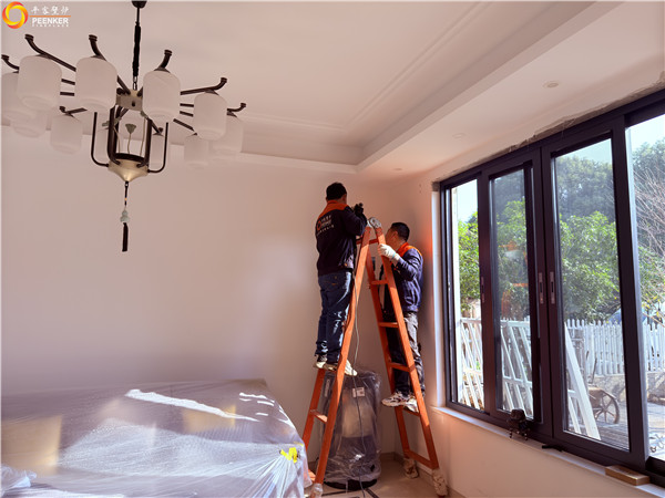 项目情况:该项目位于南京高淳凤山路双红新村,为独栋别墅,已经装修好,壁炉安装在客厅中,烟囱穿侧墙到户外,加高过屋檐,由平客壁炉项目部带队上门安装。