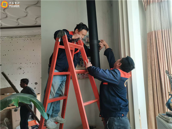 项目介绍:该项目为独立建筑,客户选择丹麦Morso独立式火炉安装在客厅位置,户外使用丹麦Exodraft壁炉风机代替传统不锈钢烟囱,解决抽力问题,该项目由平客壁炉项目部带队上门安装。