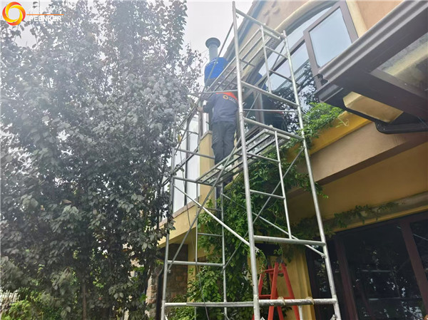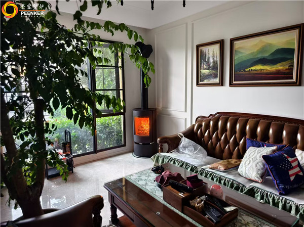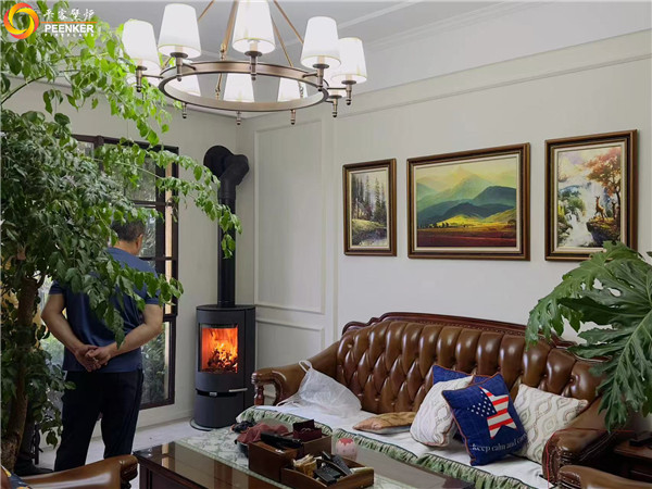 项目情况:该项目位于南京卧龙湖别墅区,为独立建筑,业主已经装修入住,选择独立式火炉安装在靠近外墙位置,室内烟囱穿侧墙安装,由【平客壁炉】项目部带队上门安装。